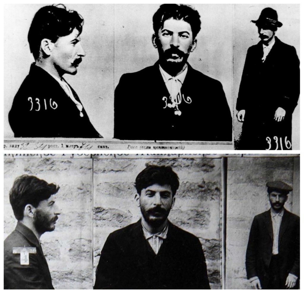 Στα αρχεία της Διεύθυνσης Χωροφυλακής του κυβερνείου του Μπακού βρέθηκαν φωτογραφίες από δύο συλλήψεις το 1910 (κάτω) και το 1911 (επάνω) του νεαρού ασθενικού, Τζουγκασβίλι. Στο κείμενο που συνόδευε τις φωτογραφίες καταγράφονται σχολαστικά τα εξωτερικά του χαρακτηριστικά. Ο Ιωσήφ Τζουγκασβίλι είναι «ισχνός»· έχει μαλλιά «μαύρα πυκνά»· «δεν φέρει γενειάδα, αλλά, μουστάκι»· πρόσωπο «στικτό, γεμάτο φακίδες ανεμοβλογιάς»· σχήμα κεφαλής «οβάλ»· μέτωπο «λείο και στενό»· φρύδια «τοξοειδή»· μάτια «βαθουλωτά καστανά με κιτρινάδα»· μύτη «ευθύγραμμη»· ύψος «μέτριο, 2 αρσίν, 4,5 βερσίν» (εφόσον 1 Αρσίν = 0,71 μ. και 1 Βερσόκ = 4,4 εκ.μ., άρα 2 αρσίν + 4,5 βερσίν = 1,62 μ. περίπου)· σωματική διάπλαση «κανονική»· κάτω γνάθος «οξεία»· φωνή «σιγανή»· «στο αριστερό αυτί κρεατοελιά»· χέρια: το ένα απ’ αυτά, το αριστερό, ατροφικό· στο αριστερό πόδι «το δεύτερο και το τρίτο δάκτυλο κολλημένα» (συνδακτυλία). Καταγράφονται και άλλα είκοσι διακριτικά10. Για το αριστερό του χέρι που έδειχνε ατροφικό, με τον αγκώνα να μην μπορεί να λυγίσει κανονικά υπάρχουν δύο βασικές ερμηνείες. Είτε ότι είχε τραυματιστεί κατά την γέννα του, προκαλώντας του μια πάθηση που αποκαλείται παράλυση Ερμπ, είτε όταν ήταν εφτά χρονών είχε πάθει ατύχημα (κάποιοι λένε ότι χτυπήθηκε από άμαξα) και δεν θεραπεύτηκε όπως έπρεπε11.