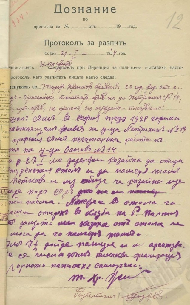 Πηγή: Тодор Живков. Полицейско досие. Протокол от разпит на 06.03.1934, Ф. 2124 К; оп. 1; а.е. 10515 Б, http://policefiles.archives.bg/dosieta/2013-01-23-11-14-23/512-2013-01-23-11-20-22