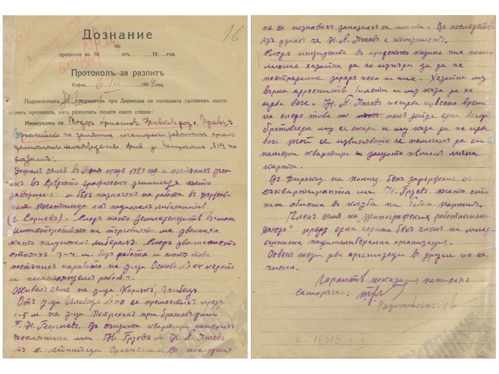 Πηγή: Тодор Живков. Полицейско досие. Протокол от разпит на 14.02.1935, Ф. 2124 К; оп. 1; а.е. 10515 Б, http://policefiles.archives.bg/dosieta/2013-01-23-11-14-23/512-2013-01-23-11-20-22