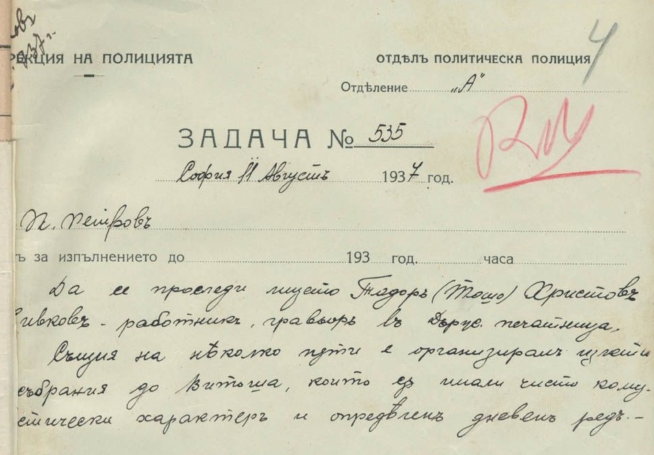 Πότε πρόλαβε το «αντικρατικό» του ενεργητικό να μεγαλώσει, να γίνει επικίνδυνα γνωστός; Από την Пъша Павлова ξέρουμε ότι η επιχείρηση «Болшевик» έγινε στις 16 Ιανουαρίου 1935, και από τους συμμετέχοντες στην επιχείρηση «България», ότι αυτή έλαβε χώρα ορισμένες μέρες μετά. Η προσαγωγή του στην Ασφάλεια γίνεται στις 4 Φεβρουαρίου. Πότε πρόλαβε να περάσει και στην παρανομία;