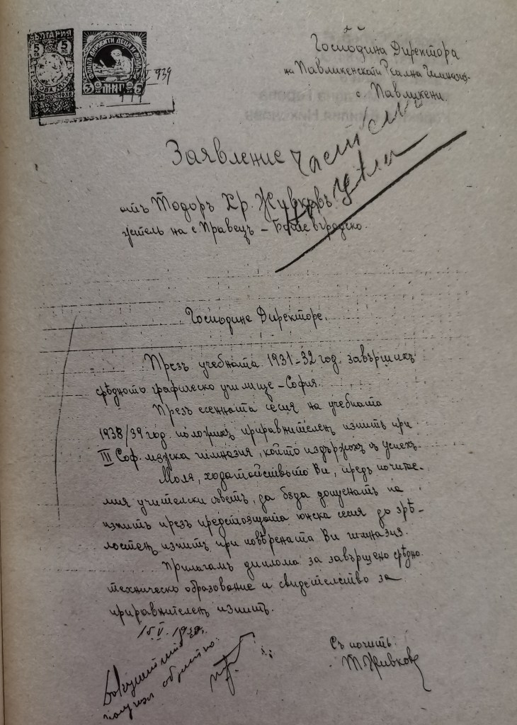 Έτσι την επόμενη χρονιά στις 16 Μαΐου 1939 με αίτηση του (№111) προς τον διευθυντή του Πραγματικού Γυμνασίου Павликени, την οποία μάλλον γράφει η σύζυγός Μάρα Μαλέεβα, ζητά να του επιτραπεί να συμμετέχει στις απολυτήριες εξετάσεις (матури) του Ιουνίου 1939. Ενώ αρχικά η αίτησή του έγινε δεκτή και το όνομά του μπήκε στον κατάλογο (№ 80) των μαθητών που θα πάρουν μέρος, λίγες μέρες πριν τις εξετάσεις, η εξεταστική επιτροπή με απόφασή της κρίνει ότι «λόγω παρατυπιών και ελλείψεων στα δικαιολογητικά του, δεν του επιτρέπεται η συμμετοχή στις απολυτήριες εξετάσεις»15. Στην αυτοβιογραφία του ο Ζίβκοφ θεωρεί ότι επειδή ο Διευθυντής ήταν γνωστό αντιδραστικό στοιχείο από τα μέρη του και επειδή ήξερε το ποιόν του Ζίβκοφ, αποφάσισε να ματαιώσει την αποφοίτησή του: «…директорът на гимназията в Павликени бе известен ренегат от нашия край, който е познавал житието-битието ми. И решил да осуети моето дипломиране.»16 Ο Ζίβκοφ μόνος του απαντά στην ερώτηση που θα μπορούσε να του κάνει ο αναγνώστης – γιατί επιλέγει να εξεταστεί στο Γυμνάσιο του Павликени και όχι στο Γυμνάσιο στο οποίο πήρε και τα συμπληρωματικά μαθήματα – στο 3ο Γυμνάσιο Αρρένων Σόφιας. Γιατί απλά από εκεί που μένει στο Дъскот, το Павликени είναι πιο κοντά από την Σόφια. «Планирах да се явя на зрелостния изпит в Павликени по простата причина, че бе по-близо от София.»17 Αυτό είναι μια λογική εξήγηση για την πρώτη φορά, όταν να υποθέσουμε, ακόμα δεν ήξερε το ποιόν και τα σχέδια του Διευθυντή. Όμως ξανακάνει αίτηση να του επιτραπεί η συμμετοχή του στις απολυτήριες εξετάσεις την φθινοπωρινή εξεταστική. Στην αυτοβιογραφία του ο Ζίβκοφ αναφέρει μόνο αυτή την δεύτερη απόπειρα αποφοίτησης του στο Павликени. Γιατί; Από την έκθεση της εξεταστικής επιτροπής ξέρουμε ότι επειδή καθυστερούσαν να έρθουν τα δικαιολογητικά του, στις 27 Σεπτεμβρίου του επετράπει η συμμετοχή στο πρώτο μάθημα –Βουλγάρικη γλώσσα. Την επόμενη μέρα θα εξεταζόταν στα Μαθηματικά. Εν τω μεταξύ φτάνουν τα δικαιολογητικά τα οποία είναι πάλι «παράτυπα και ελλιπή» με αποτέλεσμα να του απαγορευτεί η συμμετοχή του στις εξετάσεις. Ο Ζίβκοφ αναφέρει ότι έδωσε εξετάσεις και στα Γαλλικά, ενώ το γραπτό του στα βουλγάρικα έκανε θετική εντύπωση στους καθηγητές. Στο Πρωτόκολλο που υπογράφουν και τα 15 μέλη της εξεταστικής επιτροπής στις 30 Σεπτεμβρίου 1939, η απόφαση του αποκλεισμού του είναι ομόφωνη. Το γραπτό του στα Βουλγάρικα μηδενίζεται, ενώ δεν αναφέρεται κανένα γραπτό στη Γαλλική γλώσσα. Τελικά η απάντηση του Ζίβκοφ στην ερώτηση γιατί δεν επέλεξε το 3ο Γυμνάσιο Αρρένων Σόφιας, δεν πείθει.