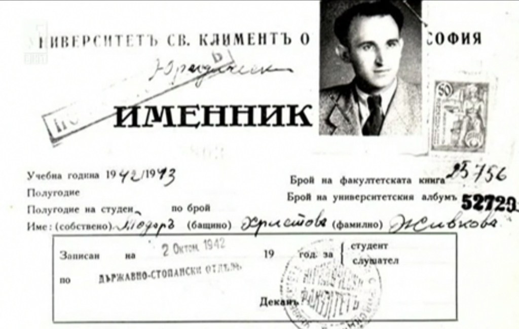 Στο αρχείο της Νομικής Σχολής του Πανεπιστήμιου „Св. Климент Охридски” υπάρχει η καρτέλα (μητρώο – именник) του φοιτητή Тодор Христов Живков για το διδακτικό έτος 1942-1943. Η εγγραφή του έγινε στις 2 Οκτωβρίου 1942. Ο αριθμός μητρώου του είναι 25756. Υπάρχουν άλλες δύο καρτέλες η μία του 1943 (δεν αναφέρεται ο μήνας και η μέρα) και άλλη από τις 5 Νοεμβρίου επίσης του 1943. Και στις τρεις καρτέλες δεν αναφέρεται ούτε ένα μάθημα στο οποίο να έχει εμφανιστεί.