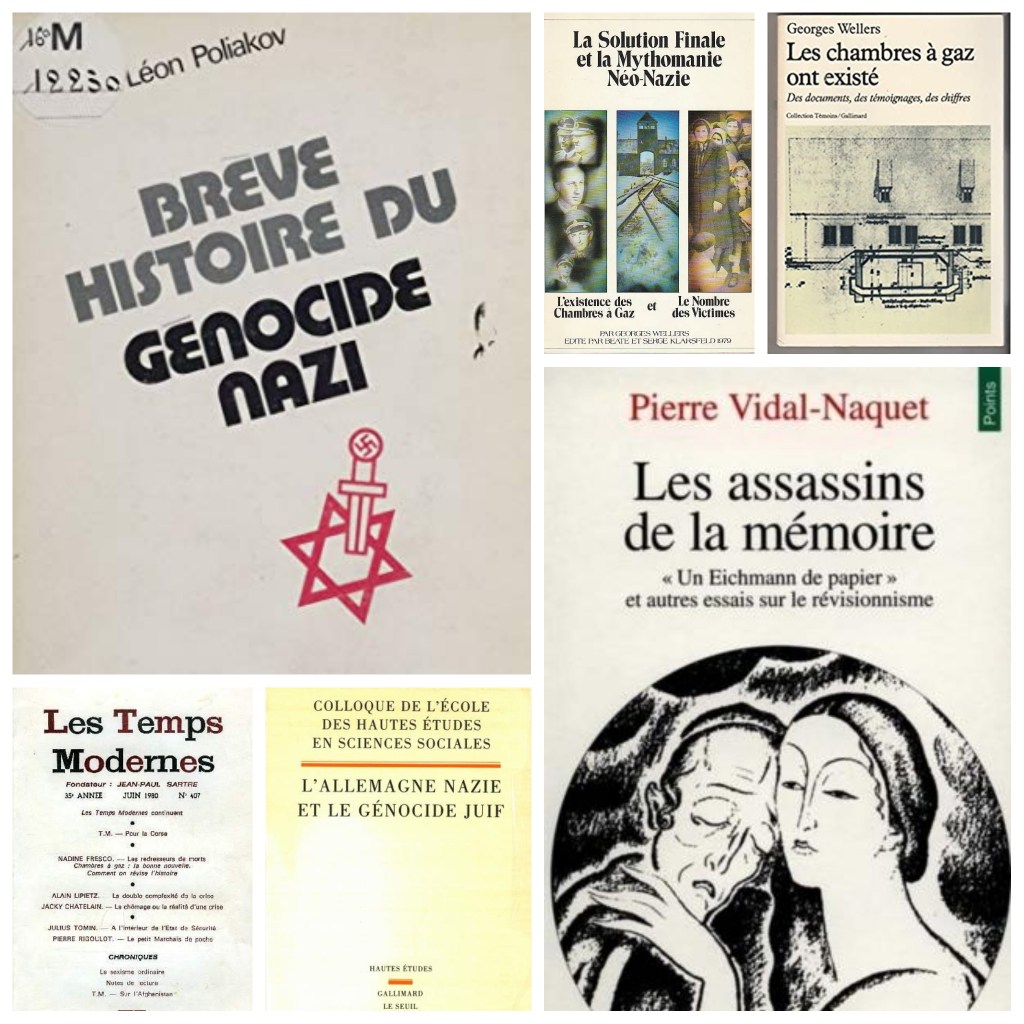 Το 1979, ο Λεόν Πολιακόφ έγραψε μια «Σύντομη Ιστορία της Γενοκτονίας των Ναζί». Μέσα από αυτό το εκπαιδευτικό βιβλίο, ο συγγραφέας εκθέτει τις διαφορετικές χρονολογικές φάσεις της Τελικής Λύσης και συντάσσει μια ακριβή ιστορία της γενοκτονίας των Εβραίων. Επίσης το 1979 θα εκδοθεί το βιβλίο του Ζωρζ Ουέλερς «Η Τελική Λύση και η Νέο-ναζιστική Μυθομανία», που απευθύνεται «σε καλόπιστους ανθρώπους που αγνοούν τα πραγματικά γεγονότα και που κινδυνεύουν, γι’ αυτό το λόγο, να αποδεχτούν τη δυσφήμιση και τους άσκοπους ισχυρισμούς των απολογητών του ναζισμού»60. Δύο χρόνια αργότερα, ο Ουέλερς συνέχισε αυτή τη μελέτη και την τεκμηρίωσε στο: «Οι θάλαμοι αερίων υπήρχαν»61.