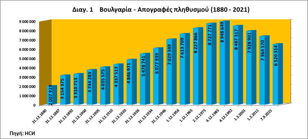 Με βάση λοιπόν την προκαταρκτική εκτίμηση των αποτελεσμάτων της απογραφής 2021, στις 7 Σεπτεμβρίου 2021, (ημερομηνία αναφοράς) στη Βουλγαρία ζούσαν 6 520 314 άτομα.