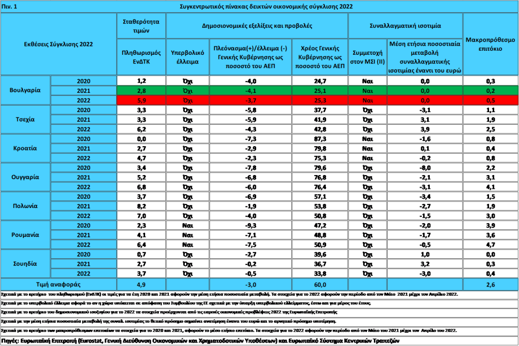 Ανακεφαλαιώνοντας σύμφωνα με τις Εκθέσεις Σύγκλισης της Ευρωπαϊκής Επιτροπής και της ΕΚΤ που δημοσιεύθηκαν την 1η Ιουνίου 2022: