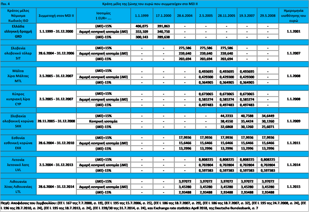Εδώ να θυμίσουμε ότι όταν καταρτίστηκε η Συνθήκη για την Ευρωπαϊκή Ένωση, ήταν σε λειτουργία το ΕΝΣ. Είχε ιδρυθεί στις 13 Μαρτίου 1979 και λειτούργησε ως περιφερειακό σύστημα σταθερών αλλά προσαρμόσιμων συναλλαγματικών ισοτιμιών, μεταξύ των νομισμάτων των χωρών – μελών της ΕΕ μέχρι την 31η Ιανουαρίου 1998. Ο πυρήνας του συστήματος ήταν ο μηχανισμός συναλλαγματικών ισοτιμιών (ΜΣΙ) του. Όμως η μορφή του ΜΣΙ, ως συστήματος διασύνδεσης των νομισμάτων με την Ευρωπαϊκή Νομισματική Μονάδα (ECU), έπαψε ντε φάκτο να υφίσταται ήδη από τον Αύγουστο 1993 με την απόφαση να διευρυνθούν τα επιτρεπόμενα κανονικά περιθώρια διακύμανσης από ± 2,25%, σε ±15%. O μηχανισμός αυτός, για ιστορικούς λόγους, αποκαλείται σήμερα ΜΣΙ-Ι. Επίσης να θυμίσουμε ότι με το Ψήφισμα της 16ης Ιουνίου 1997 το Ευρωπαϊκό Συμβούλιο συμφώνησε να θεσπίσει μηχανισμό συναλλαγματικών ισοτιμιών «ΜΣΙ ΙΙ» κατά την έναρξη του τρίτου σταδίου της οικονομικής και νομισματικής ένωσης την 1η Ιανουαρίου 1999 που θα αντικαταστήσει το ΕΝΣ και το ΜΣΙ-Ι. Στην βάση του «Ψηφίσματος» συνήφθη συμφωνία μεταξύ της Ευρωπαϊκής Κεντρικής Τράπεζας και των εθνικών κεντρικών τραπεζών των χωρών της ΕΕ εκτός ζώνης ευρώ, για τη θέσπιση των λειτουργικών διαδικασιών του μηχανισμού συναλλαγματικών ισοτιμιών στην οικονομική και νομισματική ένωση. Η αρχική «Συμφωνία των κεντρικών τραπεζών για τον ΜΣΙ II» της 1ης Σεπτεμβρίου 1998 μετά από τρεις τροποποιήσεις αντικαταστάθηκε από νέα συμφωνία της 16ης Μαρτίου 2006, η οποία και έκτοτε τροποποιείται κάθε φορά που μεταβάλλεται η σύνθεση των κρατών μελών του μηχανισμού.