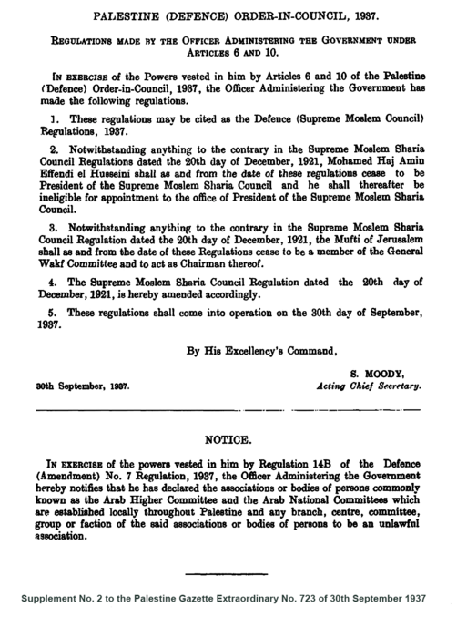 30 Σεπτεμβρίου 1936: Ο Ύπατος Αρμοστής Sir Arthur Wauchope ανακοινώνει κατάσταση έκτακτης ανάγκης.