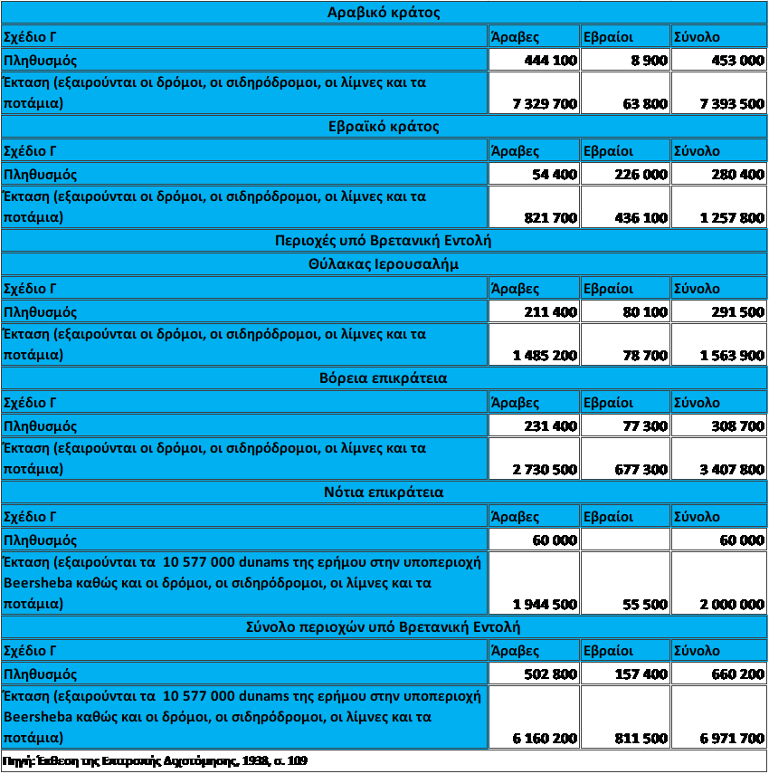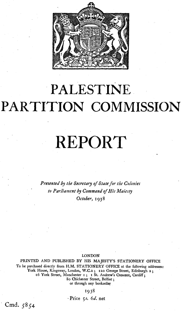 Report of the Palestine Partition Commission of 1938, chaired by Sir John Woodhead. Published by His Majesty’s Stationery Office, London, as command paper Cmd. 5854. Στο: https://ia600909.us.archive.org/21/items/WoodheadCommission/Woodhead-abbyy.pdf
