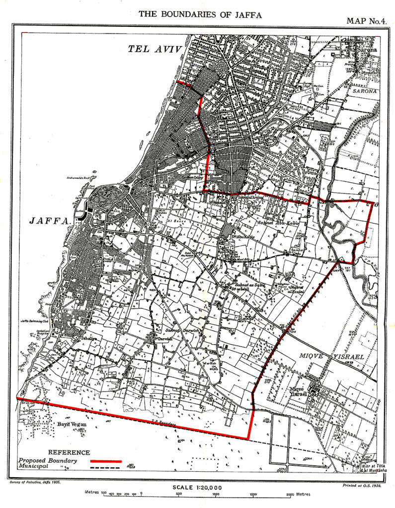 19 – 29 Ιουνίου 1936: Οι κάτοικοι – όλοι Άραβες – στην παλιά πόλη της Γιάφα, στο λόφο με θέα το λιμάνι, με γραπτή ειδοποίηση διατάσσονται στις 17 Ιουνίου εντός είκοσι τεσσάρων ωρών να εκκενώσουν τα σπίτια τους. Στις 19 Ιουνίου ξεκινά η κατεδάφιση 237 κατοικιών Αράβων, με τη «βοήθεια» εκρηκτικών, με πρόφαση την οικιστική αναδιαμόρφωση και βελτίωσή της. Η καυστική κριτική για αυτή την ενέργεια από τον ανώτατο δικαστή της Παλαιστίνης Sir Michael McDonnell δεν έγινε δεκτή από τη διοίκηση και ο δικαστής θα απομακρυνθεί σύντομα από τη χώρα.