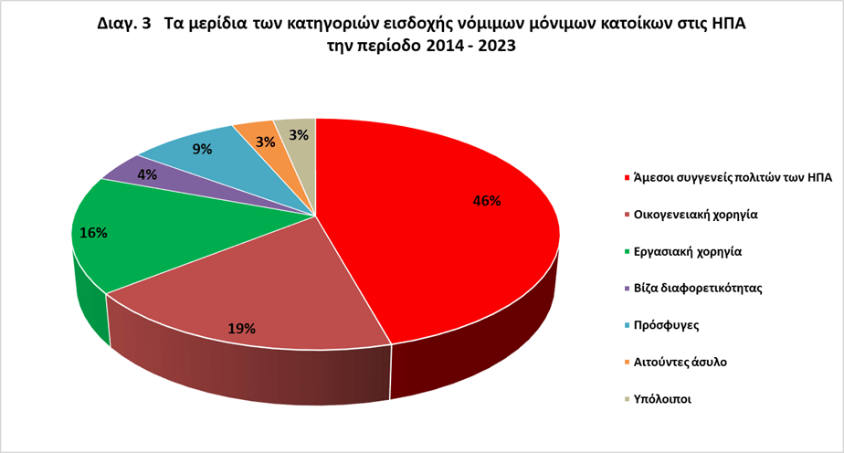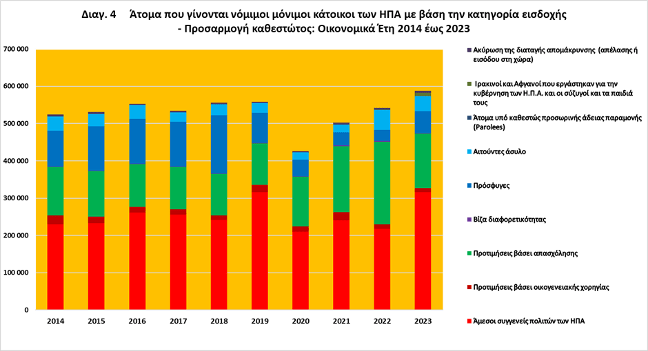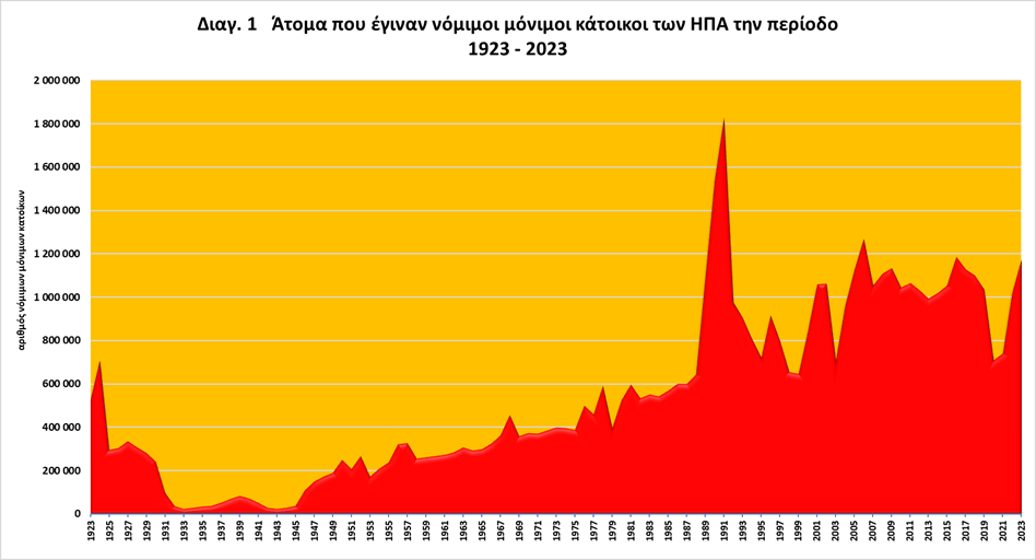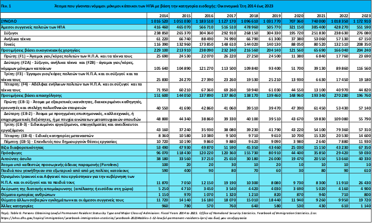 Security Statistics. Yearbook of Immigration Statistics. Στο: https://ohss.dhs.gov/topics/immigration/yearbook-immigration-statistics/yearbook-2023#tables-1-12-lawful-permanent-residents-lprs) και δική μου επεξεργασία
