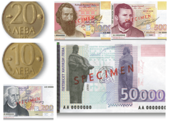 Αμέσως μετά την πτώση του καθεστώτος, η χώρα εισήλθε σε περίοδο υπερπληθωρισμού και αλλεπάλληλων υποτιμήσεων του λεβ. Κατά την περίοδο αυτή εκδόθηκαν κέρματα έως και 50 λεβ, καθώς και χαρτονομίσματα έως και 50.000 λεβ.