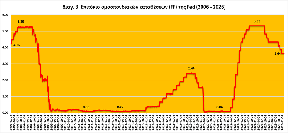 Πηγή: Federal Reserve Bank of St. Louis – FRED, https://fred.stlouisfed.org/series/FF, επεξεργασία δική μου